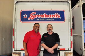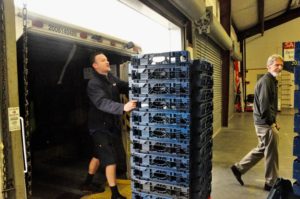 Read MoreIn one of the smallest garages in Santa Rosa, two of our members finish paperwork after their routes while speaking with Business Agent John Bottali about new contract proposals.