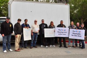 Teamsters Local 315, Teamsters Local 853, Teamsters Local 856, and Teamsters Joint Council 7 joined Silicon Valley Rising (SV Rising) to leaflet at Google HQ.
