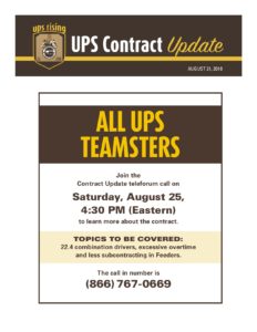 Hop on the contract update call for information about 22.4 combination drivers, excessive overtime, and less subcontracting in Feeders. Plus, a factsheet on 10 Reasons To Vote Yes, courtesy of UPS Rising.