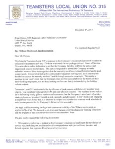 Read MoreSecretary-Treasurer Don E. Garcia writes cease-and-desist letter to UPS regarding the 70 hour workweek implementation.